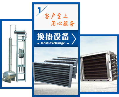 本公司充分與大專院??蒲袡C構協同研發創新形成了以換熱設備為主體的多種系列產品。主要產品有螺旋板式換熱器(Ⅰ、Ⅱ 、Ⅲ型), 空氣換熱器(散熱器),空氣加熱器,空氣熱交換器,空調換熱器(表冷器),管殼式換熱器(列管)及各類非標設備等,為化工、紡織印染、涂裝烘漆及城市供暖浴室、溫水游泳館等配套提供換熱設備,取得了良好的社會效益和經濟效益,贏得了廣大用戶的認同。